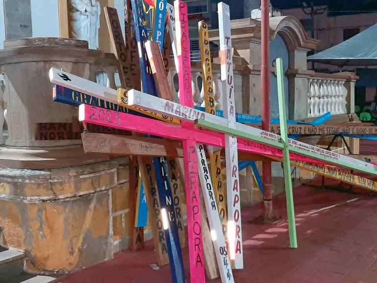 As cruzes trazidas pelos pagadores de promessas são depositadas em frente à igreja e a cada ano as madeiras são reaproveitadas com uma destinação diferente. Este ano, serão usadas na reforma do Santuário.
